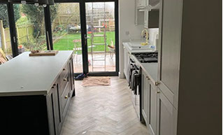 We were contracted by the client to construct a rear extension and to open up the existing kitchen and living room to make one large kitchen dining area. It was to include 6m long aluminium bi-folding doors and installation of the kitchen.